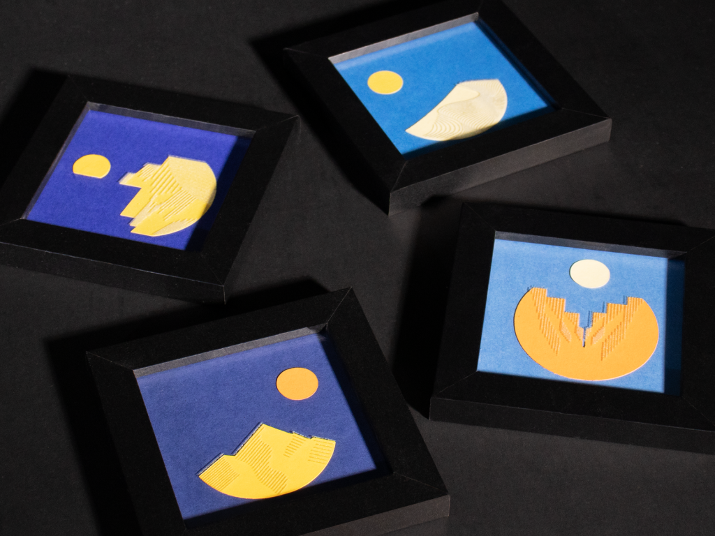 Quand le graphisme croise les techniques artisanales. Avec le projet Aurore, j’explore des passerelles entre illustration, linogravure, impression sur tétrapack, gravure sur verre et collage. Le résultat ? Des créations sensibles,